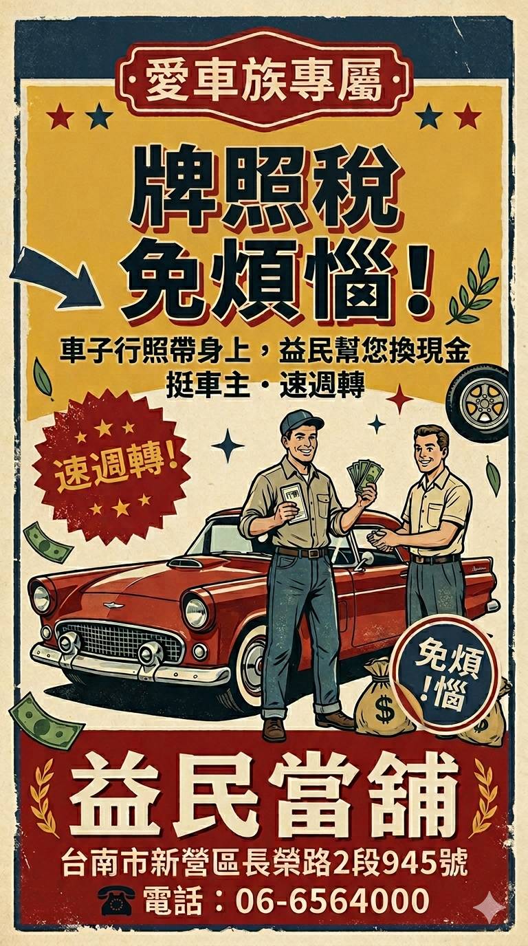 台南益民當鋪幫你把車變現金,生活不中斷!